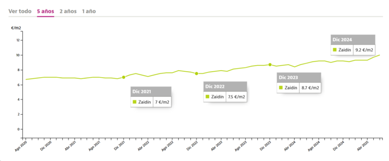 El metro cuadrado ha subido de forma sostenida en los últimos 12 meses, de agosto del 2023 a agosto de 2024, hasta alcanzar una media de 9,58 euros. Los datos de la provincia se sitúan en tercera posición en Andalucía.